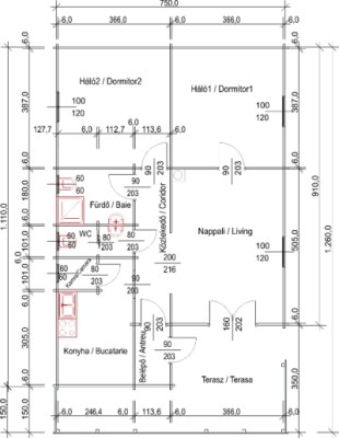 Casa monofamiliare molto confortevole, di 94,50 m2. All`interno si trova una cucina, sala da pranzo, due camere da letto, bagno, wc. L`ingresso è a forma di L portico che circonda la parte anteriore e il lato - lato destro della casa.
