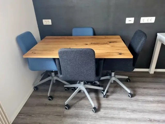 glued oak table top with epoxy-oil, suun umbrella parts,
