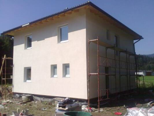 Tutto il materiale grezzo (OSB, intonaco in lana minerale "Rockwool" "Knauf" condensa film) utilizzato per la costruzione di case è stato acquistato da Austria, Germania, compreso il legname (KVH), marcato CE, con tutte le caratteristiche richieste dalla Comunità europea .